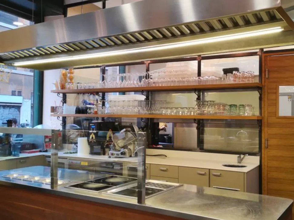Per la prima lo spazio a nostra disposizione era ridotto e pertanto abbiamo pensato di sviluppare la cucina in verticale inserendo un abbattitore e un forno trivalente, le piastre in vetroceramica, l’impastatrice, la raviolatrice, la gnoccatrice e la zona lavaggio.